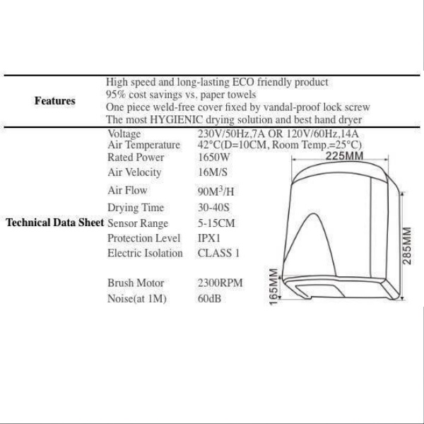 خشککن VOX مدل ECO با عملکرد سریع و طراحی مینیمال، یکی از بهترین گزینهها در بازار محسوب میشود. صدای کم، مصرف انرژی مناسب و کیفیت ساخت بالا، آن را برای فضاهای پرتردد مثل مراکز خرید، ادارات و رستورانها ایدهآل کرده است. نصب آسان و ظاهر مدرن آن نیز باعث شده تا در طراحی داخلی سرویسها به خوبی هماهنگ شود. تنها نکته قابل توجه، نبود تنوع رنگی است که ممکن است برای برخی فضاها محدودیت ایجاد کند.