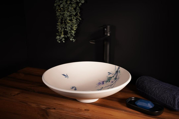 روشویی جنس مارمونایت ویرا طرح گل آبی – ضد خش و آنتیاسید : مدل vira-210